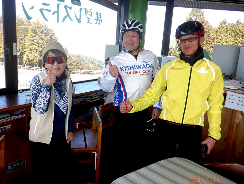 葛城山・・出会いが楽しいサイクル仲間・・・・<サイクル点検して、葛城山へ上がろう~> 2026/02/14 葛城山でくらTさん出会う・・野瀬さん百井さん// 塔原を上がる・・やなんさん ![]() 2026/02/14 葛城山で、東野さん出会う・・ハギスミWさん// UP画像・・ 2026/02/13 田村勝利さんロードで流谷観音堂、蠟梅の里へ// UP画像・・ 2026/02/13 帰り道出会う・・奥野さん// 今日は3本上がる・・・UP画像・・ 2026/02/13 ゆたか茶屋で出会う・・山田タカヒデさん// UP画像・・ 2026/02/13 ゆたか茶屋で出会う・・宇治智香さん宇治Mさん// UP画像・・ 2026/02/13 葛城山で橋本治さん出会う・・奥野さん山田タカヒデさんん// UP画像・・ 2026/02/13 葛城山で橋本治さん出会う・・山田タカヒデさんポパイさん// UP画像・・ 2026/02/13 橋本治さん葛城山手前で出会う・・宇治智香さん// UP画像・・ 2026/02/13 橋本治さん出会う・・ハイランド管理人、大吾さん・宇治さん// UP画像・・ 2026/02/13 粉河コース上り口で一休み・・// 粉河コースのミカン畑激坂へ・・UP画像・・ 2026/02/13 粉河コースで出会う・・宇治智香さん// バレンタインチョコ ゲット・・UP画像・・ 2026/02/13 粉河コースで出会う・・宇治さん、久しぶり・・// 元気な宇治さん、UP画像・・ 2026/02/13 2本目、粉河コースへ下る・・// 粉河コース上り口で一休み・・UP画像・・ 2026/02/13 河合高架下でー1℃・・今日は調子が悪い・・// 今日はロードで・・・UP画像 2026/02/12 葛城山は当分、雪解け・・・ポパイ・東野さん・・// UP画像・・ ![]() 2026/02/10 奥野さん、スパイクタイヤで上がる・・// あと400m辺りの風景・・UP画像・・ *2月10日、塔原コースは2kmからアイスバーンあり、引き返す・・// UP画像・・ 2026/02/09 塔原コースの2km、積雪をMTBで上がる・奥野さん// 橋本治さん撮影 ![]() ![]() 2026/02/10 橋本治さん、出会う・・東野さん・奥野さん・・// 奥野さん上がる・・UP画像 2026/02/10 橋本治さんに出会う・山本大町さん// ・・塔原バス停で帰る・・ UP画像 2026/02/10 帰り道出会う・・橋本治さんに出会う・// アイスバーンで引き返す・・ UP画像 2026/02/10 帰り道出会う・・橋本治さんこれから葛城山へ・・// 蕎原コースから UP画像 2026/02/10 帰りの塔原バス停で出会う・・イガワさん// 頑張ってます・・UP画像・・ 2026/02/10 塔原コース上り口から2kmのアイスバーン・・// ココで引き返す・・UP画像・・ 2026/02/10 塔原コース上り口から1kmのアイスバーン・・// 歩く・・UP画像・・ 2026/02/10 塔原コース上り口から200mのアイスバーン・・// 歩く・・UP画像・・ 2026/02/10 今日は0℃・・塔原バス停で一休み・・// クロカワに出会う・・UP画像・・ ![]() ![]() 2026/02/09 橋本治さん出会う・・Masa.Hさん奥野さん// 積雪をゴール・・UP画像・・・ 2026/02/06 橋本治さん出会う・・奥野さんトウチャク・・B~A// UP画像・・・ 2026/02/06 葛城山で出会う・・山田タカヒデさん//・・UP画像・・・ 2026/02/06 葛城山で出会う・・奥野さん //・・UP画像・・・ 2026/02/06 中尾コースの5km過ぎ・・牛舎坂へ・・// 4本のアンテナ、あと1km、UP画像・・ 2026/02/06 中尾コースの4.7km過ぎ・・天空の村へ// 柿の木坂の○○さん UP画像・・ 2026/02/06 中尾コースの4.5kmの18%超えの激坂へ・・// 激坂を上がる・・UP画像・・ 2026/02/06 中尾コースの3.6km付近の激坂へ・・// 激坂を上がる・・UP画像・・ 2026/02/06 中尾コースの3.5kmで20%の激坂へ・・// 激坂を上がる・・UP画像・・ ![]() ![]() 2026/02/06 中尾コースの上り口・・// 3kmで中尾コースの激坂区間へ・・UP画像・・ 2026/02/06 中尾コースの激坂区間手前・・// 激坂区間、1kmを下る・・UP画像・・ 2026/02/06 中尾コースへ下る・・天空の村へ・・ようこそ!// 柿の木坂風景・・UP画像・・ ![]() ![]() ![]() 2026/02/06 今日は3℃・・暖かい// トウチャク・・雪解け・・UUP画像・・・ 2026/02/05 橋本治さん出会う・・奥野さん// UP画像・・・ 2026/02/05 橋本治さん出会う・・園田銀輪店さん// UP画像・・・ ![]() ![]() 2026/02/03 橋本治さん出会う・・奥野さん// 新雪をロードで上がる・・UP画像・・・ 2026/02/03 塔原コースを上がる・・田村勝利さん6.6kmの積雪//あと250mの積雪風景 2026/02/02 塔原コースを上がる・・奥野さんに出会う・・// UP画像・・・ 2026/02/02 2本目、牛滝コース上り口で一休み・・// 葛城山にトウチャク・・0℃ 2026/02/02 牛滝コース・・激坂区間で工事中・・// 牛滝コース上り口風景・・UP画像・・・ 2026/02/02 牛滝コースへ下る・・ツララが光る・・ー2~-3℃・・// UP画像・・・ 2026/02/02 葛城山は積雪ナシ・・・// 葛城山にトウチャク・・ー2℃ UP画像・・・ 2026/02/02 葛城山上がって帰る・・山本大町さんに出会う・・// UP画像・・・ 2026/02/02 河合高架下でー2℃・// 塔原コースで朝一出会う・・井阪さん画像ナシ・・ 2026/01/31 葛城山で、橋本治さん出会う・・江渕さん// UP画像・・・ 2026/01/29 葛城山で出会う・・山田タカヒデさん竹綱さん// UP画像・・・ 2026/01/29 葛城山にトウチャク・・山田タカヒデさん// 連日上がる・・UP画像・・・ 2026/01/29 粉河ハイランドで出会う・・竹綱さん// 葛城山に