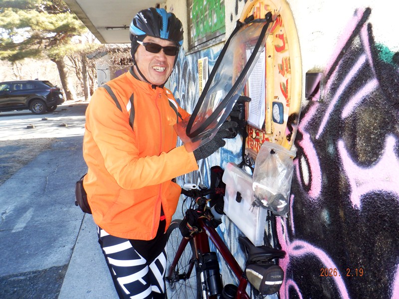 葛城山・・出会いが楽しいサイクル仲間・・・・<サイクル点検して、葛城山へ上がろう~>![]() ![]() ![]() 2026/02/19 犬鳴コース、8kmで粉河ハイランド・・// ゆたか茶屋で一休み・・UP画像・・・ 2026/02/19 犬鳴コースの45km辺りの15.7%激坂へ・・// 激坂を上がる・・UP画像・・・ 2026/02/19 犬鳴コースの3.5km辺りの激坂・・// 4km辺りの激坂・・UP画像・・・ ![]() ![]() ![]() 2026/02/19 2.3kmで犬鳴不動尊・・通過・・// 3kmでトンネル通過・・UP画像・・・ 2026/02/19 犬鳴コース上り口で一休み・・// 下りが寒かった・・UP画像・・・ 2026/02/19 葛城山尾根で出会う・・宇治さん// 粉河コースから・・UP画像・・・ ![]() ![]() ![]() 2026/02/19 東野さん出会う・・バス停で出会う・・田村勝利・芝本さん// UP画像・・・ 2026/02/19 犬鳴コースから芝本さん・・・// 葛城山で出会う・・UP画像・・・ 2026/02/19 葛城山にトウチャク・・ー3℃・・// 芝本さんトウチャク・・UP画像・・・ ![]() ![]() 2026/02/19 朝一出会う・・セキ口さん・・牛滝上がって帰る・・// UP画像・・・ 2026/02/19 今日は寒い!高架下でー2℃・・// 寒いので調子が出ない・・UP画像・・・ 2026/02/18 葛城山で、橋本治さん出会う・・・やなんさん// G~C~・・UP画像・・・ ![]() 2026/02/17 橋本治さん出会う・・毛利(SONIC)・ポパイさん// UP画像・・・ 2026/02/16 帰り道、塔原コースを上がる・・奥野さんに出会う・・// UP画像・・・ 2026/02/16 粉河ハイランドで一休み・・// 葛城山にトウチャク・・6℃・・UP画像・・ 2026/02/16 神通温泉にトウチャク・・// 神通コースの馬の背坂を上がる・・・UP画像・・・ 2026/02/16 神通コースを下る・・馬の背景色・・・UP画像・・・// UP画像・・・ 2026/02/16 葛城山尾根で出会う・・宇治さん// UP画像・・・ 2026/02/16 葛城山で出会う・・芝本さん犬鳴コースから・・・// UP画像・・・ 2026/02/16 塔原コース・・葛城山へあと3km・・// 葛城山にトウチャク・・6℃・UP画像・ 2026/02/16 塔原バス停にトウチャク・・・// 育った街で働けへんけ~・・バスの広告・・ 2026/02/15 パンク修理・・?// くらTさん出会う・・奥野さん UP画像・・ 2026/02/15 葛城山で、橋本治さん出会う・・まっきーさん// UP画像・・ 2026/02/14 葛城山でくらTさん出会う・・野瀬さん百井さん// 塔原を上がる・・やなんさん ![]() 2026/02/14 葛城山で、東野さん出会う・・ハギスミWさん// UP画像・・ 2026/02/13 田村勝利さんロードで流谷観音堂、蠟梅の里へ// UP画像・・ 2026/02/13 帰り道出会う・・奥野さん// 今日は3本上がる・・・UP画像・・ 2026/02/13 ゆたか茶屋で出会う・・山田タカヒデさん// UP画像・・ 2026/02/13 ゆたか茶屋で出会う・・宇治智香さん宇治Mさん// UP画像・・ 2026/02/13 葛城山で橋本治さん出会う・・奥野さん山田タカヒデさんん// UP画像・・ 2026/02/13 葛城山で橋本治さん出会う・・山田タカヒデさんポパイさん// UP画像・・ 2026/02/13 橋本治さん葛城山手前で出会う・・宇治智香さん// UP画像・・ 2026/02/13 橋本治さん出会う・・ハイランド管理人、大吾さん・宇治さん// UP画像・・ 2026/02/13 粉河コース上り口で一休み・・// 粉河コースのミカン畑激坂へ・・UP画像・・ 2026/02/13 粉河コースで出会う・・宇治智香さん// バレンタインチョコ ゲット・・UP画像・・ 2026/02/13 粉河コースで出会う・・宇治さん、久しぶり・・// 元気な宇治さん、UP画像・・ 2026/02/13 2本目、粉河コースへ下る・・// 粉河コース上り口で一休み・・UP画像・・ 2026/02/13 河合高架下でー1℃・・今日は調子が悪い・・// 今日はロードで・・・UP画像 2026/02/12 葛城山は当分、雪解け・・・ポパイ・東野さん・・// UP画像・・ ![]() 2026/02/10 奥野さん、スパイクタイヤで上がる・・// あと400m辺りの風景・・UP画像・・ *2月10日、塔原コースは2kmからアイスバーンあり、引き返す・・// UP画像・・ 2026/02/09 塔原コースの2km、積雪をMTBで上がる・奥野さん// 橋本治さん撮影 ![]() ![]() 2026/02/10 橋本治さん、出会う・・東野さん・奥野さん・・// 奥野さん上がる・・UP画像 2026/02/10 橋本治さんに出会う・山本大町さん// ・・塔原バス停で帰る・・ UP画像 2026/02/10 帰り道出会う・・橋本治さんに出会う・// アイスバーンで引き返す・・ UP画像 2026/02/10 帰り道出会う・・橋本治さんこれから葛城山へ・・// 蕎原コースから UP画像 2026/02/10 帰りの塔原バス停で出会う・・イガワさん// 頑張ってます・・UP画像・・ 2026/02/10 塔原コース上り口から2kmのアイスバーン・・// ココで引き返す・・UP画像・・ 2026/02/10 塔原コース上り口から1kmのアイスバーン・・// 歩く・・UP画像・・ 2026/02/10 塔原コース上り口から200mのアイスバーン・・// 歩く・・UP画像・・ 2026/02/10 今日は0℃・・塔原バス停で一休み・・// クロカワに出会う・・UP画像・・ ![]() ![]() 2026/02/09 橋本治さん出会う・・Masa.Hさん奥野さん// 積雪をゴール・・UP画像・・・ 2026/02/06 橋本治さん出会う・・奥野さんトウチャク・・B~A// UP画像・・・ 2026/02/06 葛城山で出会う・・山田タカヒデさん//・・UP画像・・・ 2026/02/06 葛城山で出会う・・奥野さん //・・UP画像・・・ 2026/0