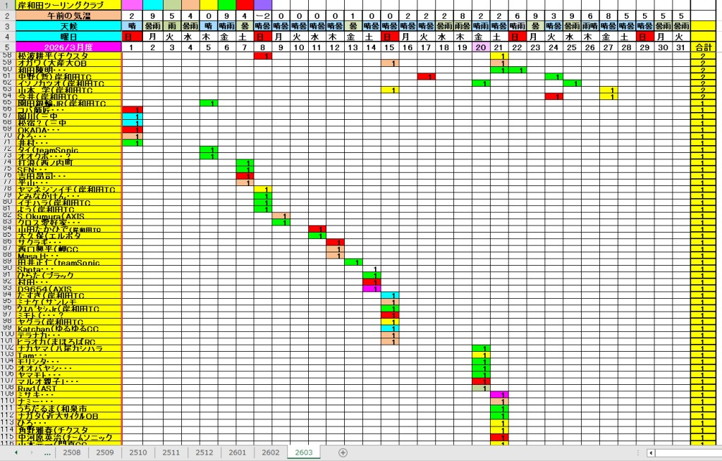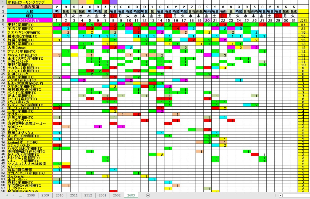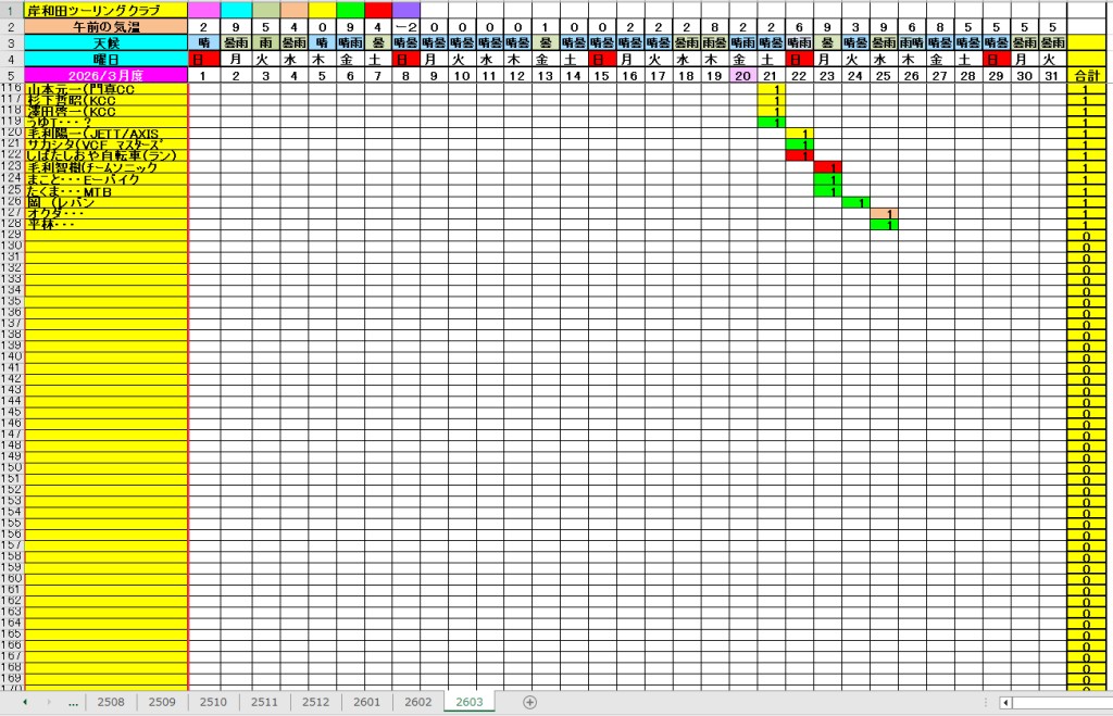<サイクルの点検、整備、安全に葛城山へ・・上がろう~> <注意・・・落石・枝折れ・倒木・穴ぼこ・落車したら骨折します・> 葛城山の下りは安全運転、油断大敵<車>に注意!・・・・安全第一 ![]() 2026/03/26 葛城山・ゆたか茶屋から大阪万博付近 眺望// 昨年、4/13 開幕~UP画像 2026/03/23 塔原バス停で出会う・・南海バス// ぼこぼこ ええやん UP画像 2026/三月度 23-24-25日臨時休業// ゆたか茶屋の茶屋の休日カレンダー 2026/ 2月度<89人登頂 357回> 奥野ー45//ウエバヤシー16//宇治ー15//山本大町ー15//竹綱ー14// 橋本ー12//江渕ー12//ポパイー11//古川ー10//イノウエー10// 福西ー10//東野ー09//アマノー09//百井ー08//フジキー08// やなんー07//井阪ー07//ヌマター07//田村勝利ー07//芝本ー07// ☆彡あなたの今月登頂回数目標は?・・・☆彡 3月度 回数表 2026/ 3/27~・・・ NO-01 NO-02 NO-03 掲示板 記帳表 2026 3月度 3/27・・・ 24~28 28~3/01 01~02 02~05 05~07 07~08 08~09 09~11 11~13 13~14 14~15 15~17 17~20 20~21 21~22 22~23 23~26 26~27・・ 葛城山登頂 累計回数表 2026/1~02月度 NO-01 NO-02 <単独の鍋谷コースは管理できないので、経由、2本目の葛城山でカウントします。> *掲示板下の写真入れに・・<葛城山のナイスショット画像プレゼント中・・> 掲示板、在庫数量・・<KTCジャージの受付・・窓口、橋本治・ウエバヤシ・> 2025// 1~12月度 年間回数 累計・・・NO-01 NO-02 NO-03 ☆彡 2005~2025まで・・年間 100本以上 葛城山サイクル登頂者 集計ミスは随時訂正・・ NO-01 NO-02 NO-03 NO-04 NO-05 NO-06 NO-07 NO-08 NO-09 NO-10 回数表 2026/02月度 2/01~28・・ NO-01 NO-02 回数表 2026/01月度 1/01~31 NO-01 NO-02 回数表 2025/12月度 01~31日・・・NO-01 NO-02 2025/11月度 01~30日 回数表 NO-01 NO-02 NO-03 2025/10月度 回数表 1~30・・ NO-01 NO-02 NO-03 9月度 回数表 2025/09/01~30・・NO-01 NO-02 NO-03 NO-04 8月度 回数表 2025/08/01~31・・NO-01 NO-02 NO-03 NO-04 7月度回数表 2025/07/01~31・・ NO-01 NO-02 NO-03 NO-04 2025/06/01~30・・・回数表 NO-01 NO-02 NOー03 NO-04 2025 5/01~31・・回数表 NO-01 NO-02 NO-03 NO-04 2025 04/01~30・・回数表 2025・・・NO-01 N0-02 NO-03 NO-04 2025 3/01~31 回数表 NOー01 NO-02 NO-03 NOー04 2025 2/01~28 回数表 NO-01 NO-02 20251/01~31★回数表 NO-01 NO-02 NO-03 2005~2024年まで100回以上・・葛城山へ上がった・累計・・ NO-01 NO-02 NO-03 NOー04 NO-05 NO-06 訂NO-07 NO-08 NO-09 |